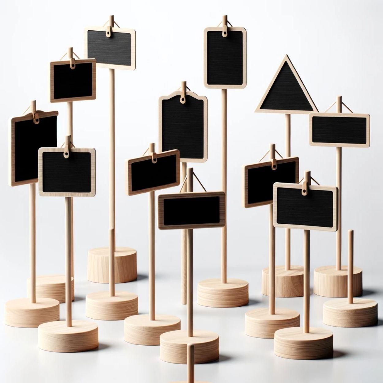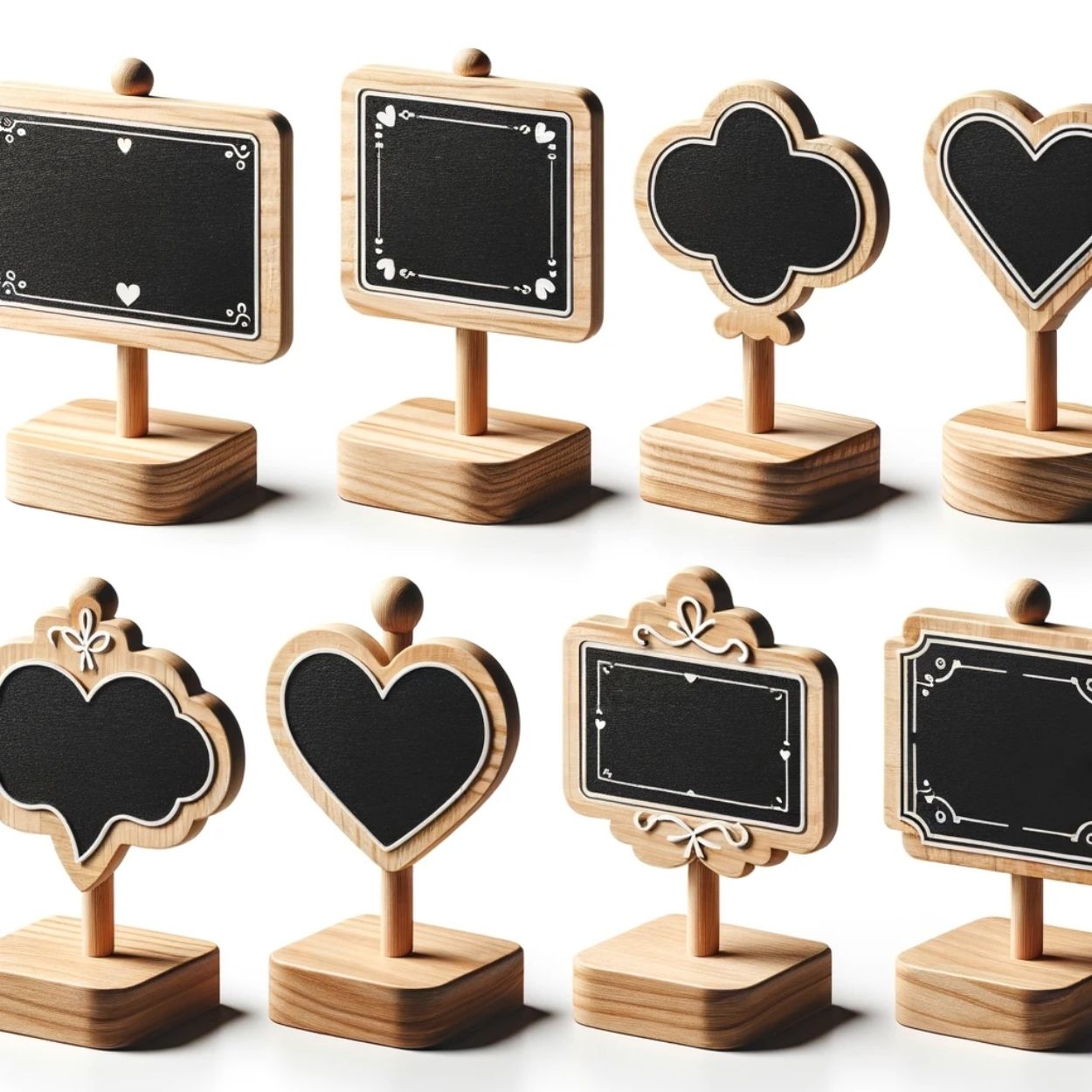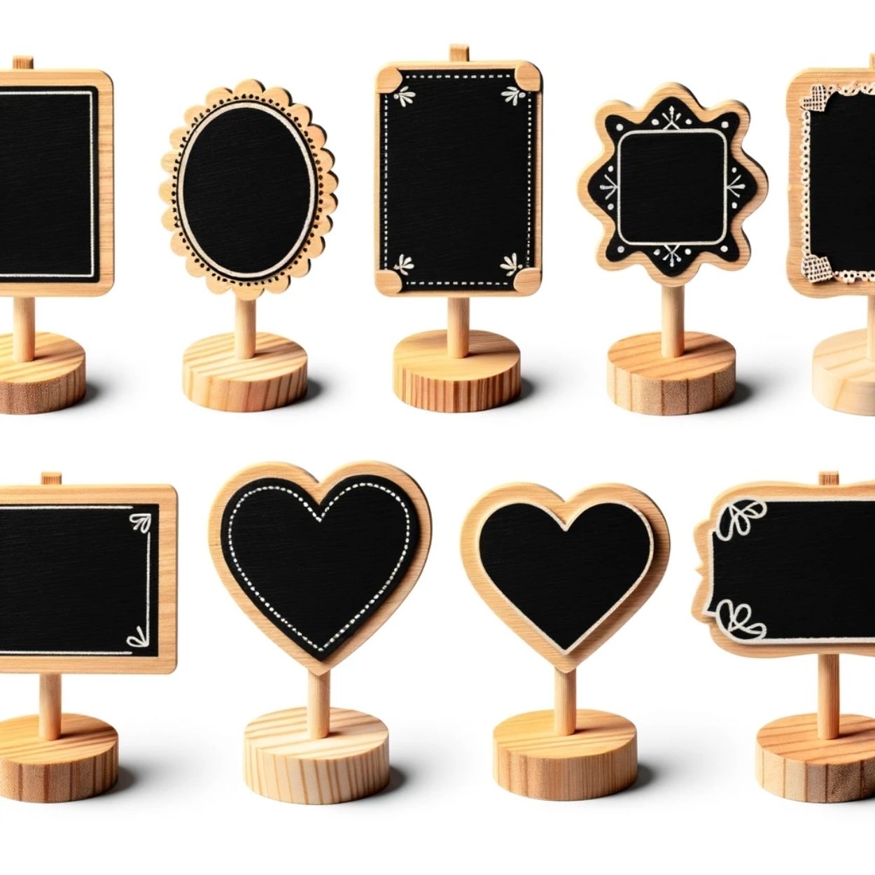 • Assorted shapes including rectangles, hearts, and more, ideal for weddings, markets, or tabletop displays.